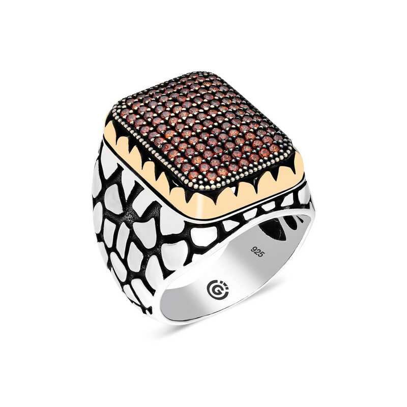 Gümüş Kırmızı Zirkon Taşlı Kare Erkek Yüzük