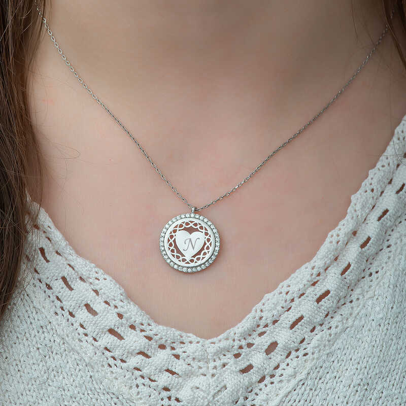 Sevgilinize sonsuz aşkı ifade etmenin en güzel, en anlamlı yollarından biri de ona sonsuz kalp temalı gümüş takılar hediye etmektir. Sevgilinize hediye edeceğiniz bu özel kolye ile ona olan sonsuz aşkınızı sevginizi ifade edebilirsiniz. Sonsuzluk halkasının ortasında yer alan kalbin üzerine sevdiğinizin isminin baş harfini ya da kendi isminizin baş harfini yazdırarak sonsuza kadar birlikte bir hayat dileğinde bulunabilirsiniz. Gümüş kişiye özel sonsuz kalp bayan kolye modeli 925 ayar gümüşten imal edilmiştir. Gümüş üzerine rodyum kaplama yapılmıştır. Rodyum kaplama yapılan gümüş bayan kolyeler parlaklığını uzun süre muhafaza eder ve oksitlenmesi gecikir. Gümüş olan zincirin boyu ortalama 45 cm"dir. Tüm gümüş bayan kolye modellerinde olduğu gibi gümüş kişiye özel sonsuz kalp bayan kolye modeli de el emeği ile üretilmiştir. Gümüş ve değerli taşlar nedeniyle belirtilen ortalama ürün ağırlığında ± %10 sapma olabilmektedir. Not : Üzerine yazılacak harfi not kısmında belirtiniz.