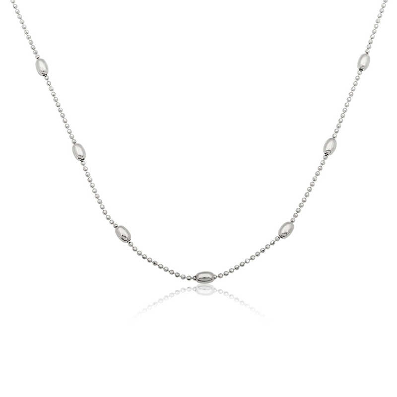 Bu şık zincir; 925 ayar gümüşten imal edilmiştir. Gümüş üzerine rodyum kaplama yapılmıştır. Rodyum kaplama yapılan bayan zincirler parlaklığını uzun süre muhafaza eder, oksitlenmesi gecikir. Sevdiğinize; doğum günü, sevgililer günü ve özel günlerde tercih verebileceğiniz mükemmel bir hediye seçeneğidir. Gümüş zincir modellerimizin tamamında olduğu gibi bu gümüş küçük top ve arpa zincir de tamamen el emeği ile üretilmiştir. Gümüş ve değerli taşlar nedeniyle ürün ağırlığında ± %10 sapma olabilmektedir.