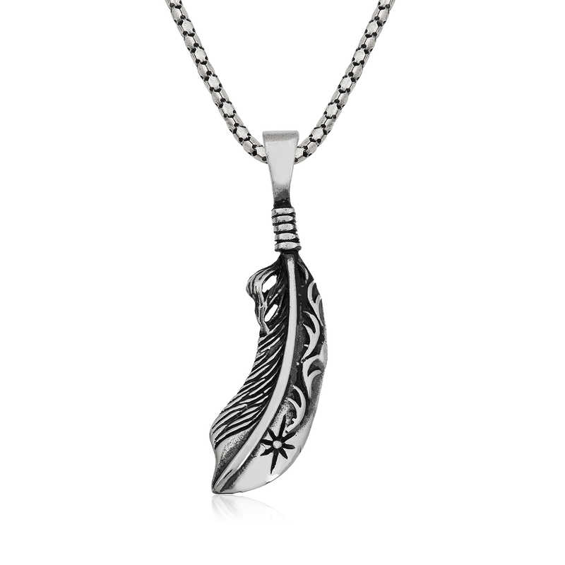Kuş tüyünün özellikle eski Mısır, Maya, İnka, Amerika kızılderilileri ve Asya Şamanizminde önemli bir yeri vardır. İlahlar, krallar ve kahramanlar için kullanılan tüy, kuş sembolüyle birçok anlamı paylaşır ve genellikle, hakikatin, doğruluğun, ilâhî adaletin, hafifliğin ve göğe çıkmada kuşlara en büyük yardımcı unsur olduğundan yükselmenin sembolü olarak kabul edilir. Sizin olduğu kadar sevdiklerinizin de keyifle takacağı bu tüy kolye modeli en güzel hediyelerden biri olacaktır. Kuş tüyü kolye modeli 925 ayar gümüşten imal edilmiştir. Gümüş üzerine oksit kaplama yapılmıştır. Oksit kaplama yapılan gümüş kolye modelleri parlaklığını uzun süre muhafaza eder ve oksitlenmesi gecikir. Gümüş kolyenin zincir uzunluğu ortalama 55 cm"dir. Tüm kolye modellerinde olduğu gibi gümüş kuş tüyü kolye modeli de el emeği ile üretilmiştir. Gümüş ve değerli taşlar nedeniyle belirtilen ortalama ürün ağırlığında ± %10 sapma olabilmektedir.