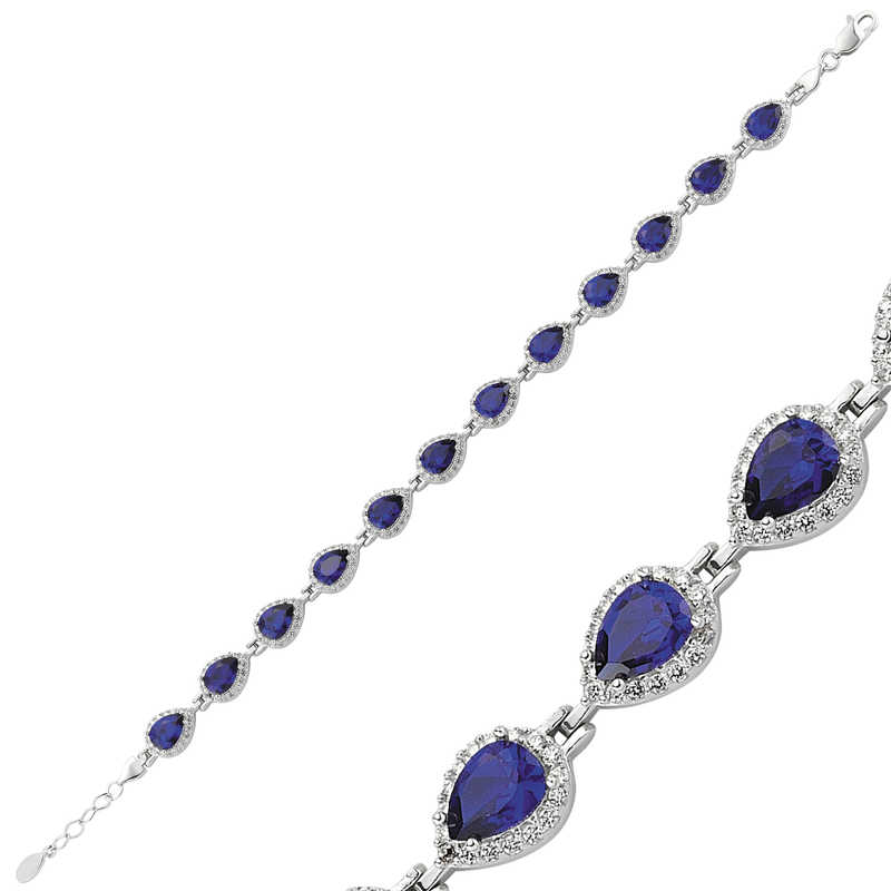 Gümüş Lacivert Taşlı Su Yolu Bayan Bileklik