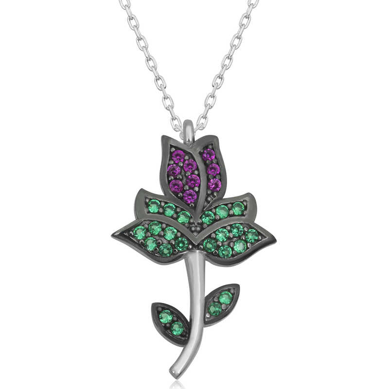 Lale rengi ve şeklinden dolayı “sevgilinin yüzüne, yanağına ve dudağına” benzetilen eşsiz bir çiçektir, aşkı ve sevgiliyi sembolize eder. Bu lale motifli kadın kolye modelimiz 925 ayar gümüşten imal edilmiştir. Üzerinde bulunan taşlar zirkondur. Gümüş üzerine rodyum kaplama yapılmıştır. Rodyum kaplama yapılan gümüş kadın kolye modelleri parlaklığını uzun süre muhafaza eder, her zaman ilk günkü gibi kullanılabilir. Kolyedeki gümüş zincir uzunluğu ortalama 45 cm’dir. Bu rodyum kaplama lale kadın kolyesi el emeği ile üretilmiştir. Gümüş ve değerli taşlar nedeniyle belirtilen ortalama ürün ağırlığında ± %10 sapma olabilmektedir.