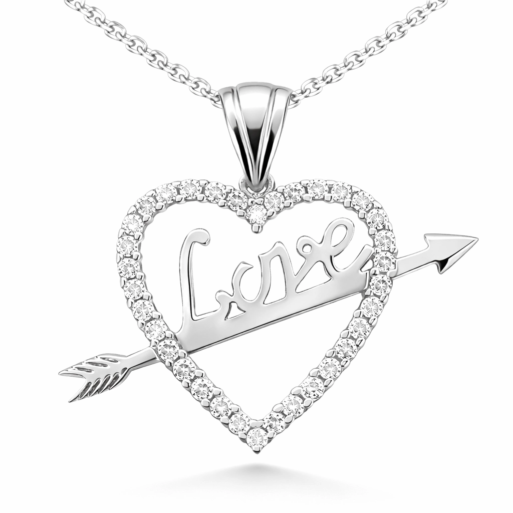Gümüş Love Oklu Kalp Bayan Kolye