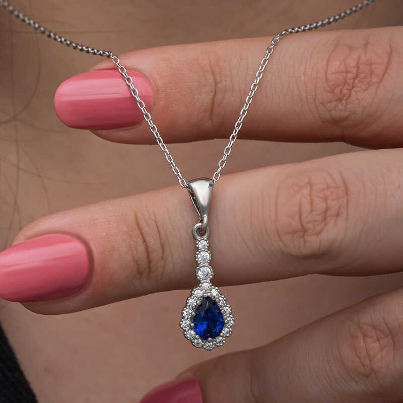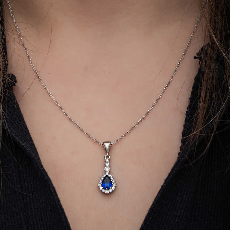 Gümüş Mavi Damla Zirkon Taşlı Kadın Kolye