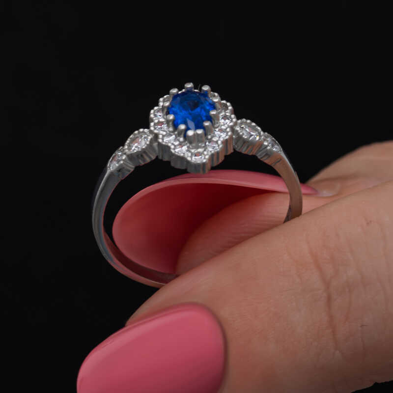Gümüş Mavi Damla Zirkon Taşlı Kadın Yüzük