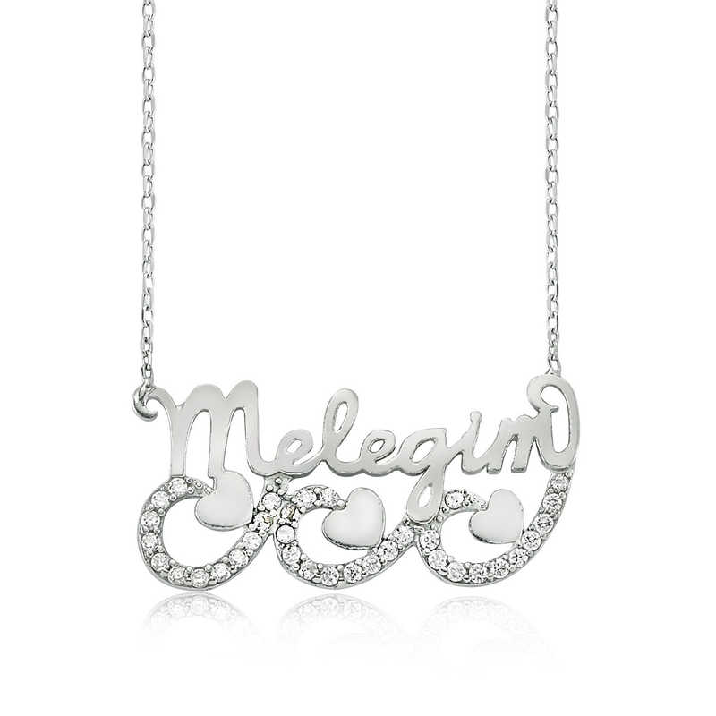 Gümüş Meleğim Yazılı Kalpli Bayan Kolye