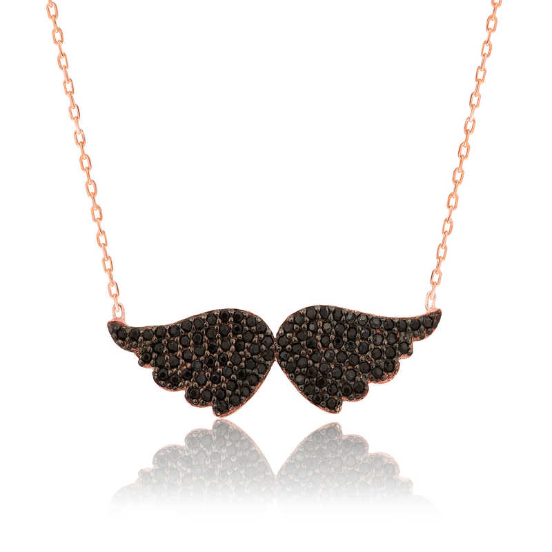 Melekler saflığın ve temizliğin simgeleridir. Bu nedenle melek kolyesi hediye edilen kişiye melek kadar saf ve temiz olduğu mesajı verilmektedir… Bu özel melek kanadı tasarımı da 925 ayar gümüşten imal edilmiştir… Tasarım melek kanadı bayan kolye üzerinde bulunan taşlar zirkondur. Kolyenin zincir uzunluğu 45 cm’dir. Zinciri de gümüşten üretilmiştir. Bu bayan gümüş kolye üzerine rose kaplama yapılmıştır. Rose kaplama yapılan ürünler parlaklığını uzun süre muhafaza eder, gümüş rengini pembe renge dönüştürür ve oksitlenmeyi geciktirir. Tüm gümüş kolye modellerimizde olduğu gibi bu gümüş melek kanadı bayan kolye modelimiz de el emeği ile üretilmiştir. Gümüş ve değerli taşlar nedeniyle ürün ağırlığında ± %10 sapma olabilmektedir.