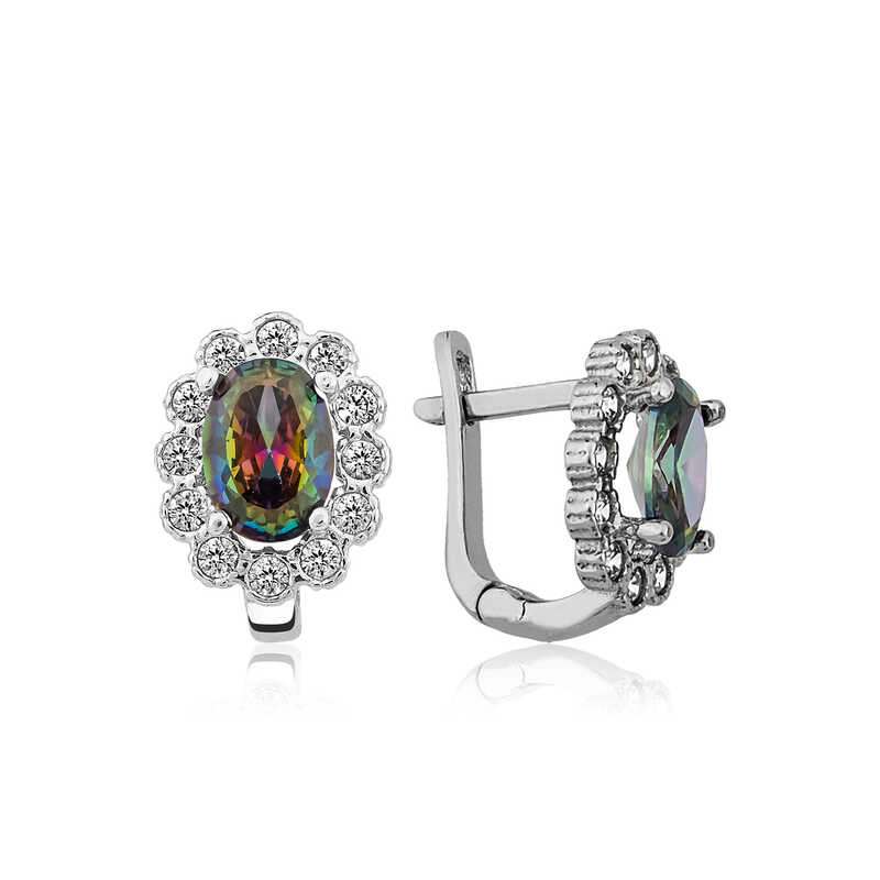 Gümüş Mistik Topaz Çiçek Desenli J Bayan Küpe
