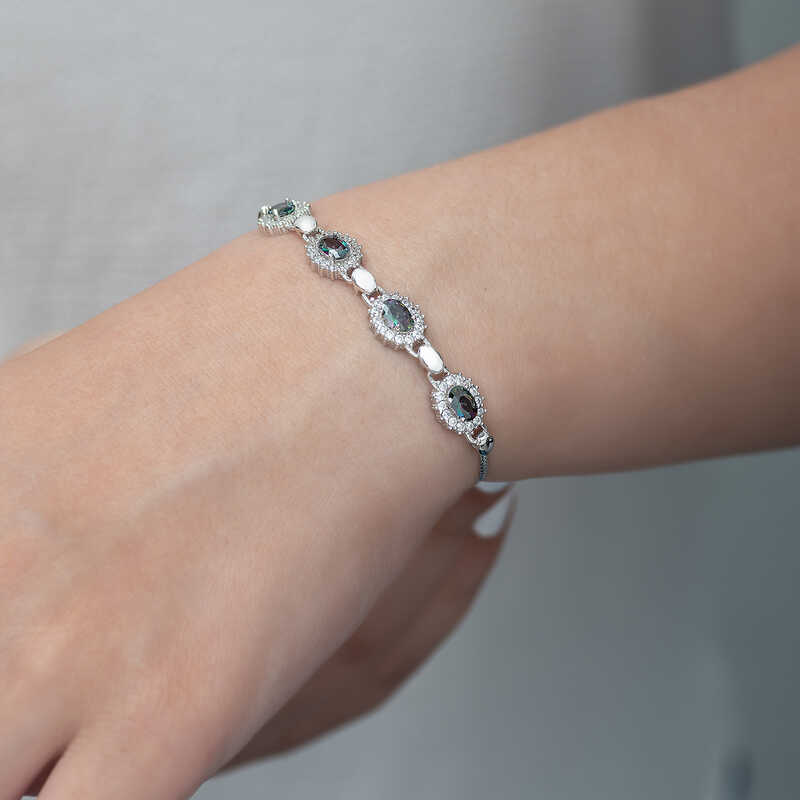Gümüş Mistik Topaz Taşlı Bileklik