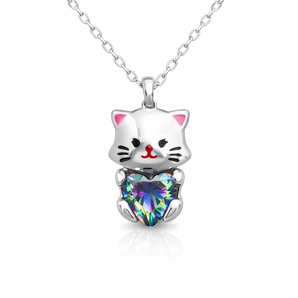 Gümüş Mistik Topaz Taşlı Sevimli Kedi Kolye