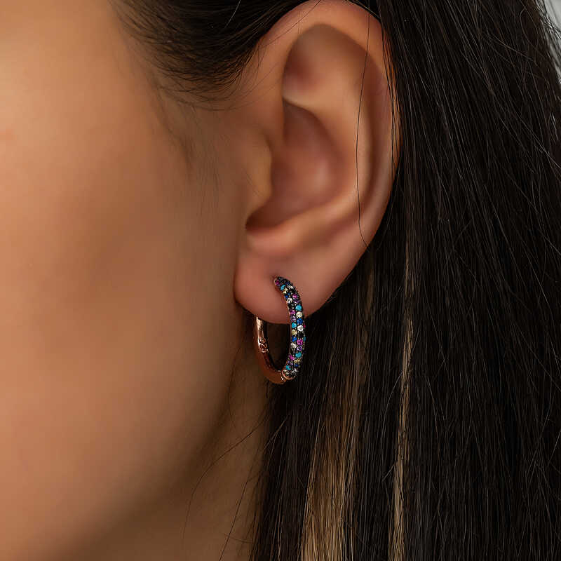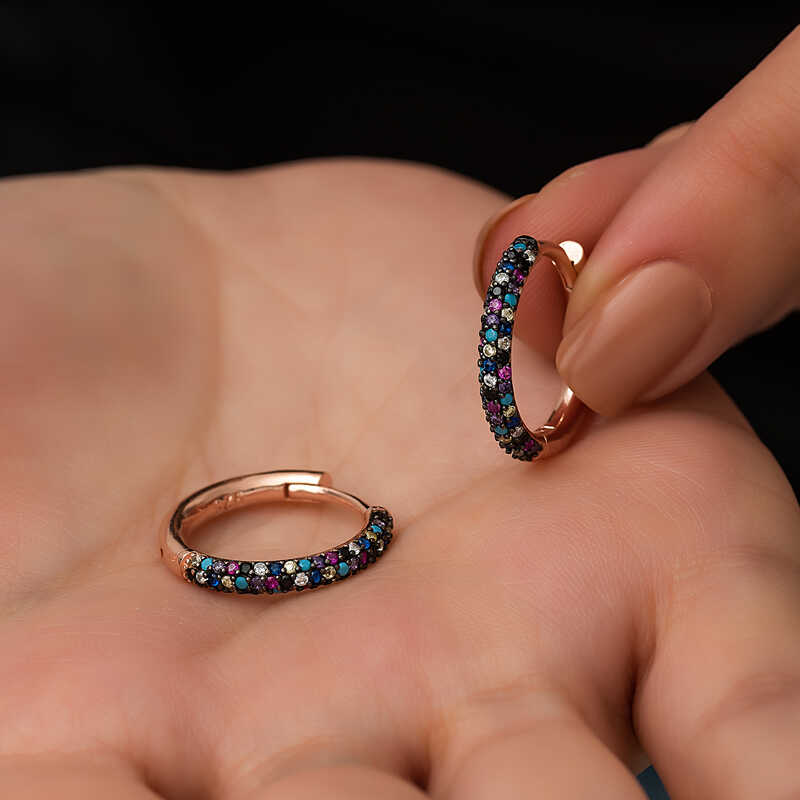 Gündelik hayatta ve özel günlerde şık tasarımı ile dikkat çeken bu küpeyi severek kullanacaksınız. Tüm bayanlara hitap eden, modası geçmeyecek olan gümüş mix halka bayan küpe sizleri bekliyor. Gümüş rose altın kaplama renkli taşlı halka bayan küpe; doğum günü hediyesi, sevgililer günü hediyesi veya annelere hediye olarak özel günlerde tercih edilebilecek mükemmel bir seçenektir. Gümüş küpe 925 ayar gümüşten imal edilmiştir. Gümüş üzerine rose altın kaplama yapılmıştır. Rose altın kaplama yapılan gümüş küpe modelleri parlaklığını uzun süre muhafaza eder ve oksitlenmesi gecikir. Tüm bayan küpelerde olduğu gibi bu küpe modeli de el emeği ile üretilmiştir. Gümüş ve değerli taşlar nedeniyle belirtilen ortalama ürün ağırlığında ± %10 sapma olabilmektedir.