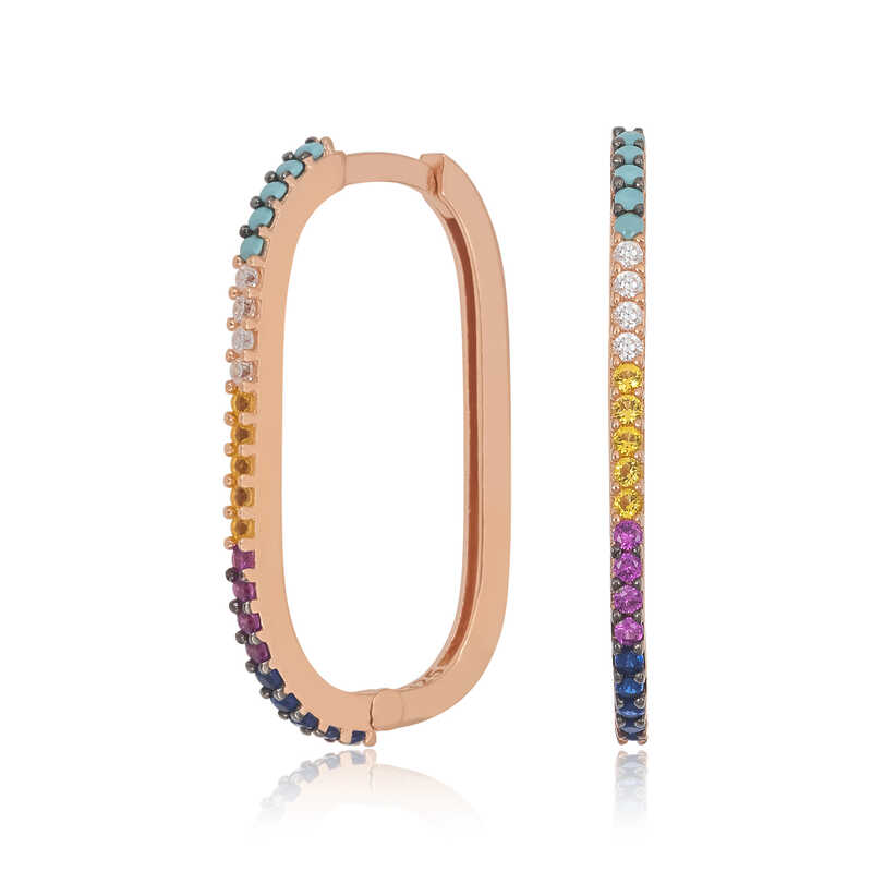 Gümüş Mix Taşlı Halka Küpe
