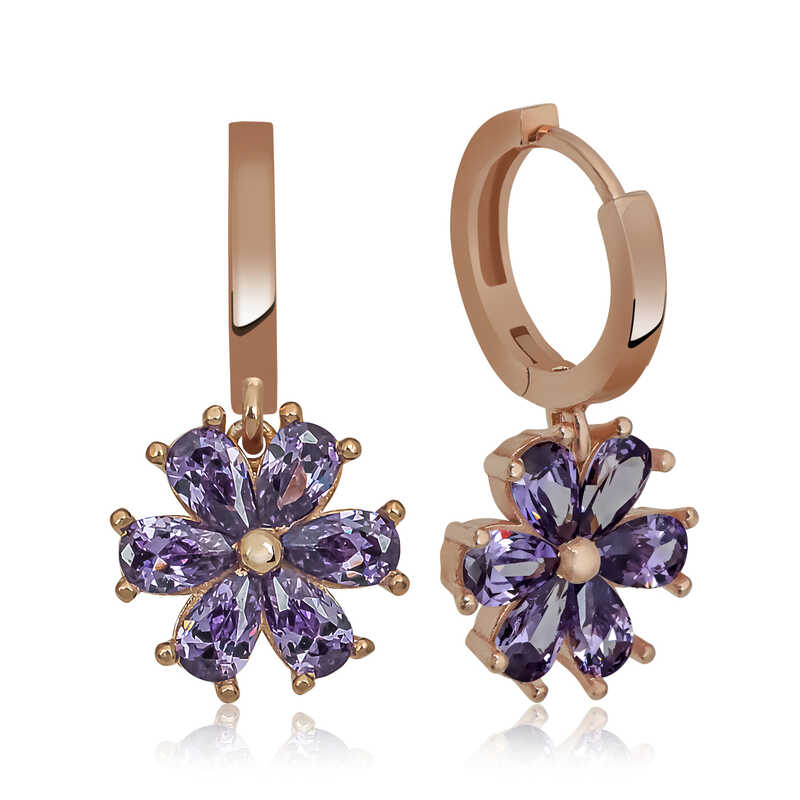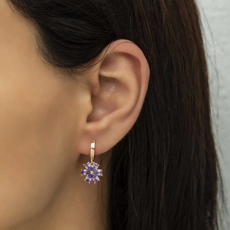 Gümüş Mor Çiçek Bayan Küpe