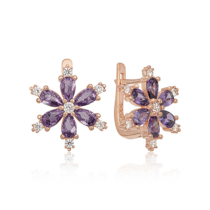 Gümüş Mor Lotus Çiçeği Kadın Küpe