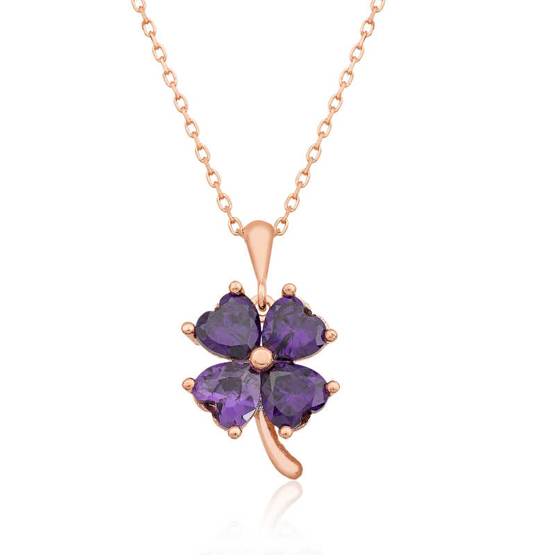 Gümüş Mor Yonca Bayan Kolye