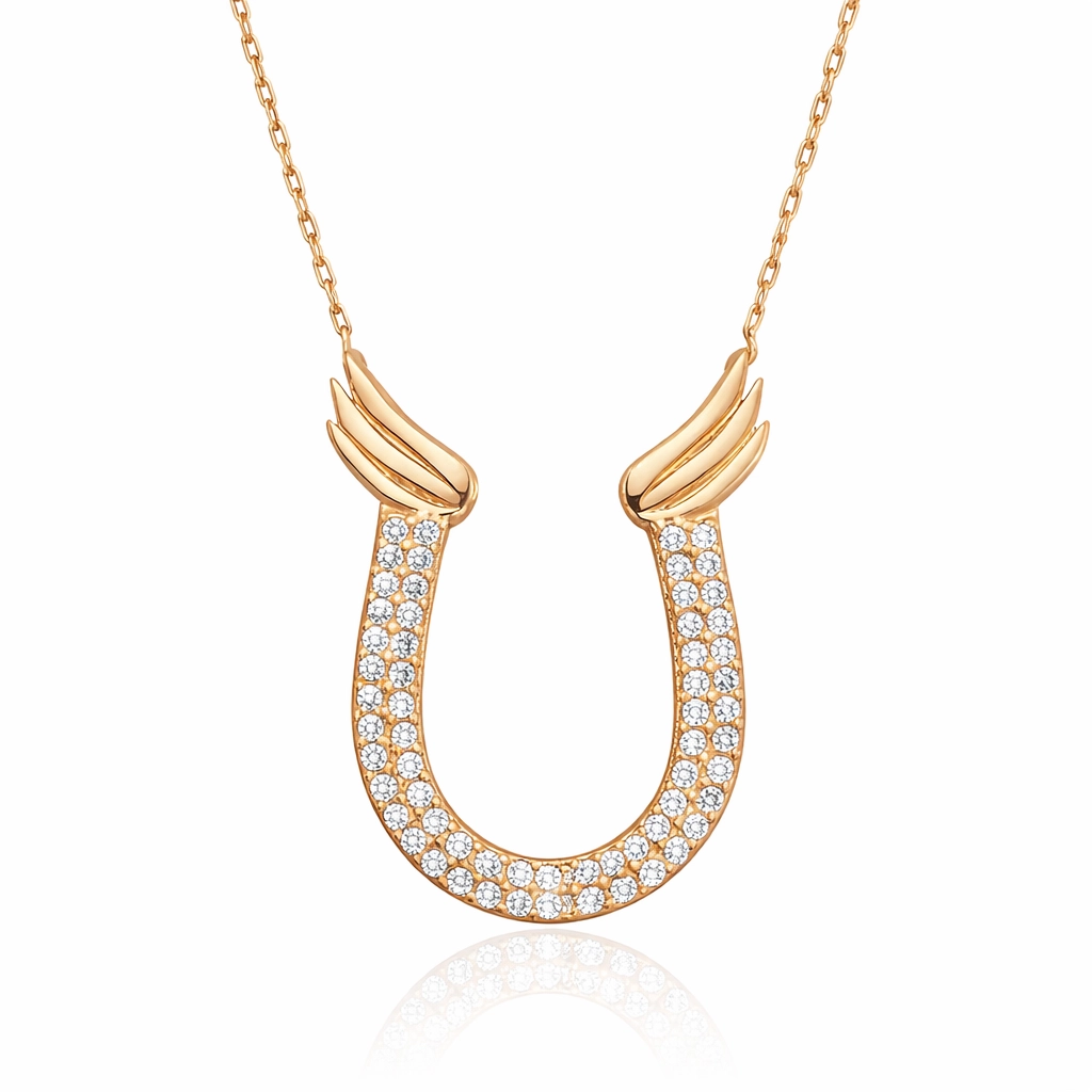 Nal sembolü şansın ve korunmanın temsilcisidir. Bu mistik havadan esinlenerek tasarlanan bu şans kolyesi ile daima iyi şansın sizinle olmasına ne dersiniz? Bu şık ve anlamlı kolyeyi doğum günü hediyesi, sevgililer günü hediyesi veya annelere hediye olarak özel günlerde tercih edilebilecek mükemmel bir seçenektir. Nal bayan kolye 925 ayar gümüşten imal edilmiştir. Gümüş üzerine rose kaplama yapılmıştır. Rose kaplama yapılan bayan kolyeler parlaklığını uzun süre muhafaza eder, gümüş rengini pembe renge dönüştürür ve oksitlenmeyi geciktirir. Üzerinde bulunan taşlar zirkondur. Zincir boyu ortalama 45 cm"dir. Tüm bayan kolyelerimizde olduğu gibi gümüş nal bayan kolye de tamamı el emeği ile üretilmiştir. Gümüş ve değerli taşlar nedeniyle ürün ağırlığında ± %10 sapma olabilmektedir.
