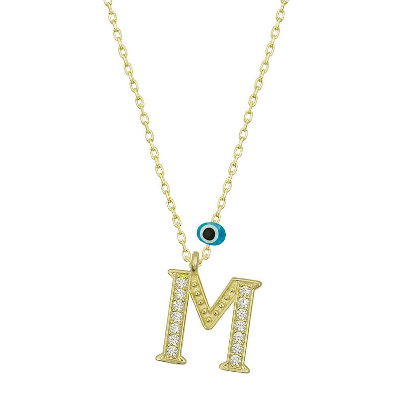Gümüş Nazar Gold M Harfi Kadın Kolye