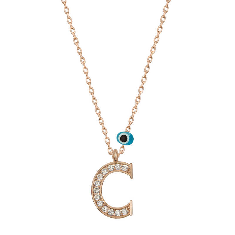 Gümüş Nazar Rose C Harfi Kadın Kolye