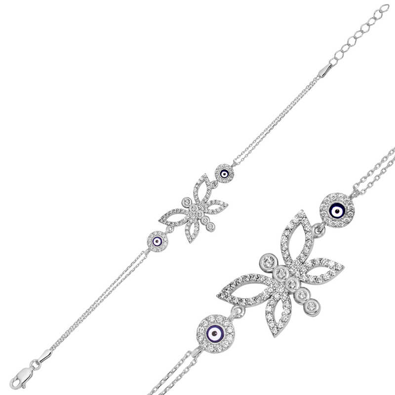 Gümüş Nazarlı Kelebek Bayan Bileklik