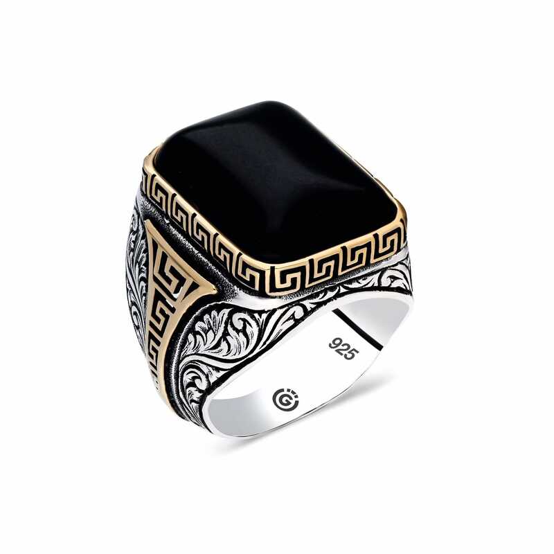 Gümüş Oniks Siyah Taşlı Kare Erkek Yüzük