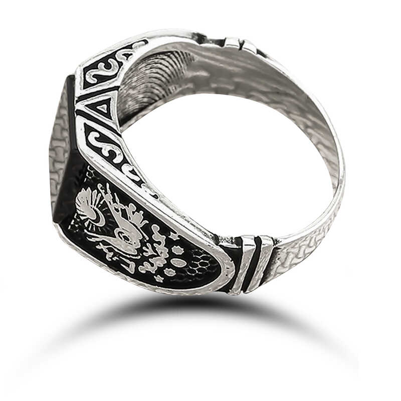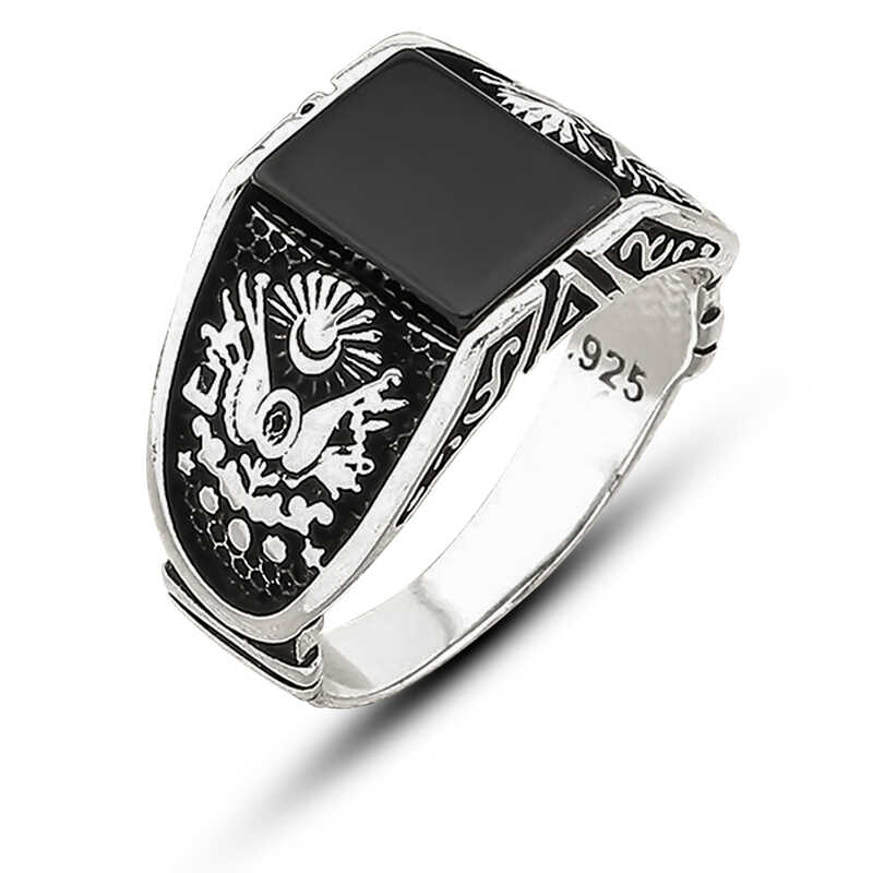 Gümüş Oniks Taşlı Osmanlı Devlet Armalı Erkek Yüzük