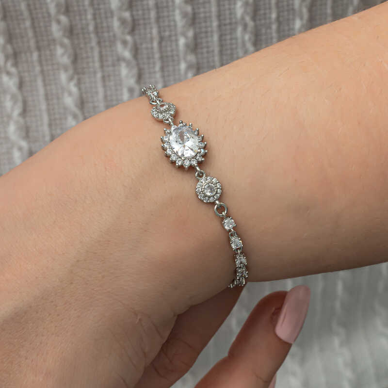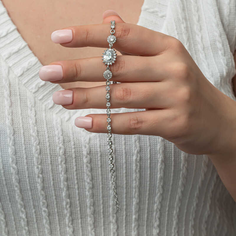 Gündelik hayatta, özel günler ve gecelerde tercih edebileceğiniz ışıl ışıl beyaz renk taşları ile yıldızları anımsatan bu bilekliği severek kullanacaksınız. Şık bir görünüm yakalamak isteyen tüm kadınlara hitap eden, modası geçmeyecek olan oval su yolu gümüş bileklik sizleri bekliyor. Gümüş oval su yolu kadın bileklik; doğum günü hediyesi, sevgililer günü hediyesi veya annelere hediye olarak özel günlerde tercih edilebilecek mükemmel bir seçenektir. Gümüş oval su yolu kadın bileklik 925 ayar gümüşten imal edilmiştir. Gümüş üzerine rodyum kaplama yapılmıştır. Rodyum kaplama yapılan kadın bileklikler parlaklığını uzun süre muhafaza eder ve oksitlenmesi gecikir. Tüm kadın bilekliklerde olduğu gibi gümüş oval su yolu kadın bileklik de el emeği ile üretilmiştir. Gümüş ve değerli taşlar nedeniyle belirtilen ortalama ürün ağırlığında ± %10 sapma olabilmektedir.