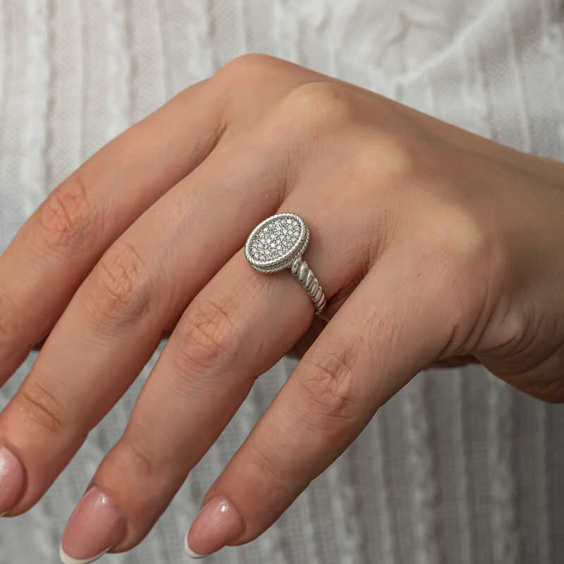 Gümüş Oval Zirkon Taşlı Kadın Yüzük