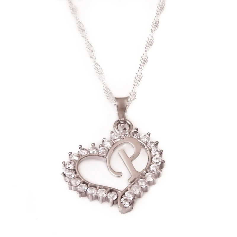 Gümüş P Harf Kalpli Bayan Kolye