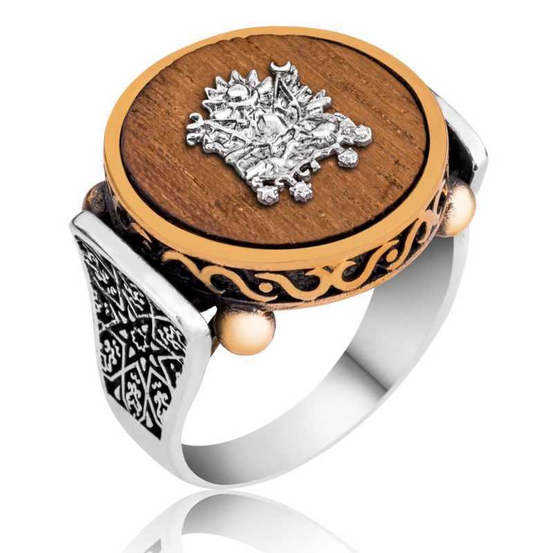 Gümüş Pelesenk Ağacı Osmanlı Armalı Erkek Yüzük