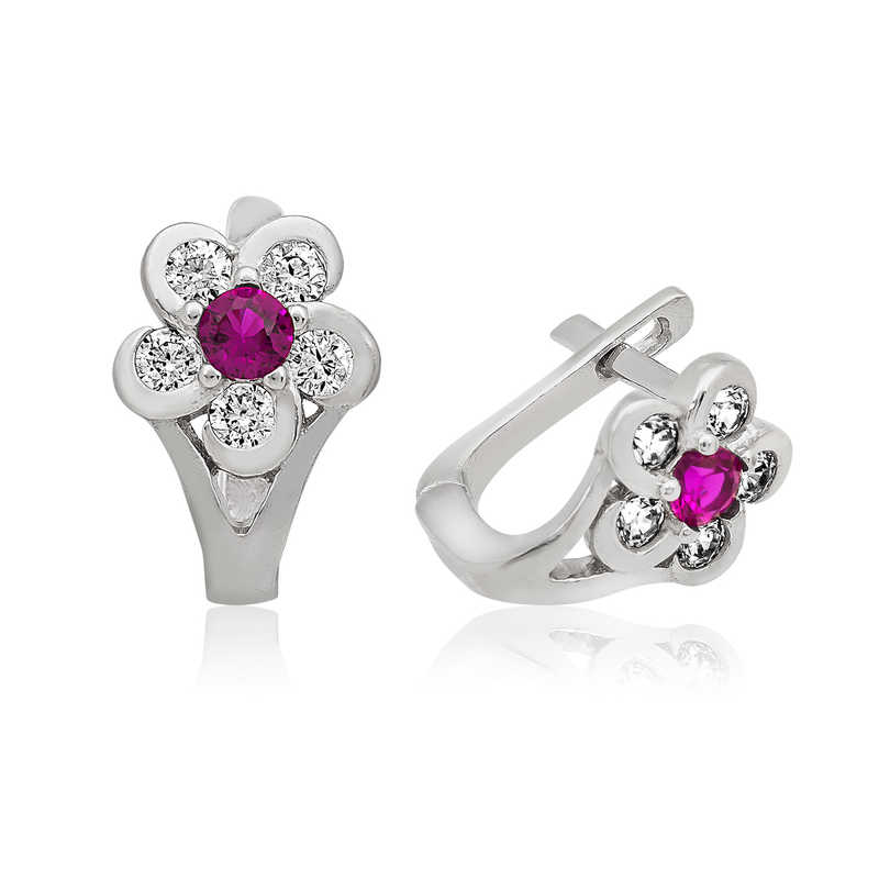 Gümüş Pembe Çiçek Çocuk Küpesi