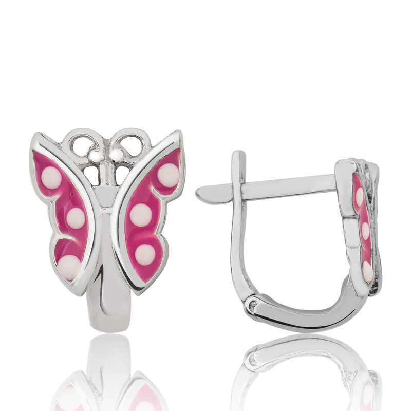 Gümüş Pembe Kelebek Çocuk Küpesi