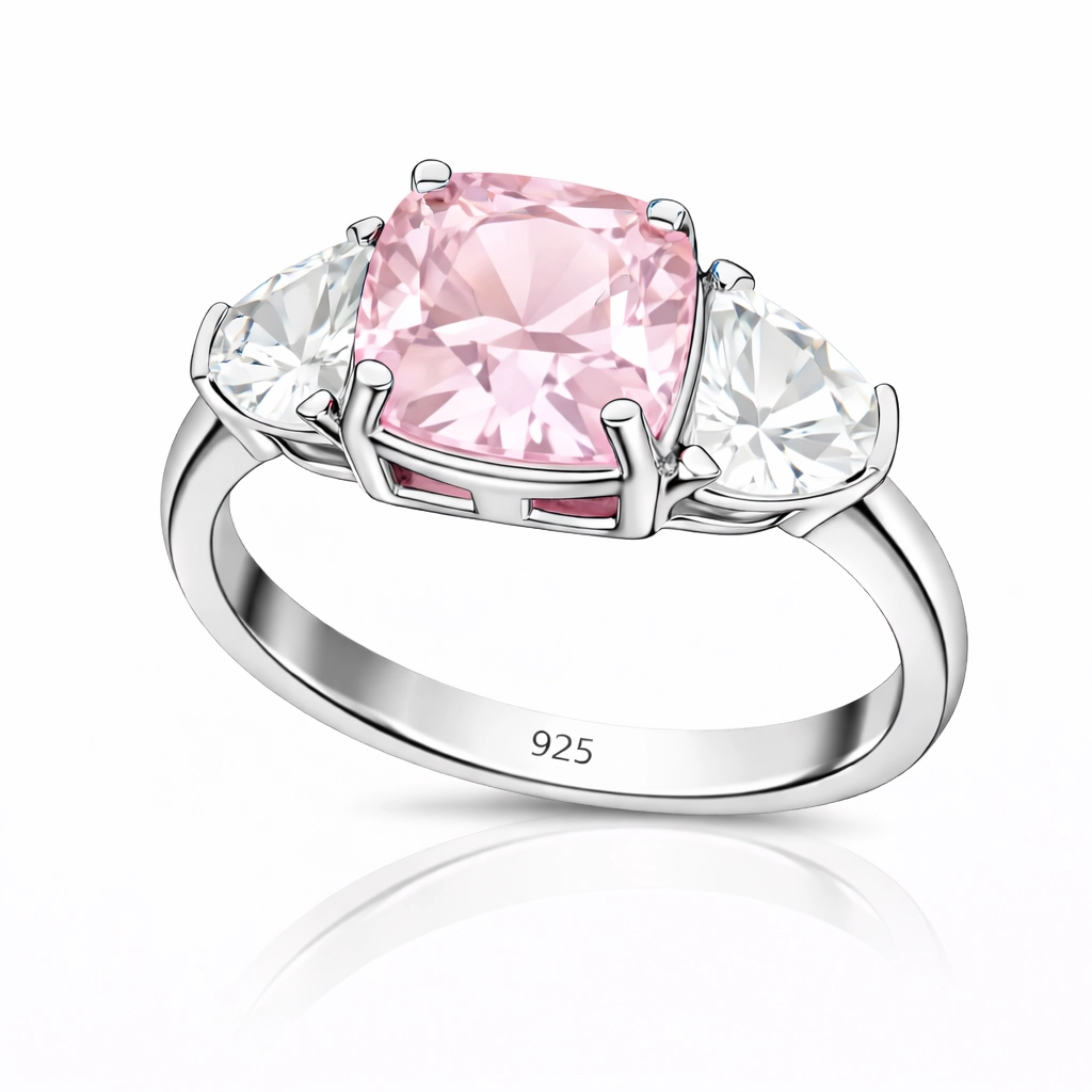 Gümüş Pembe Zirkon Taşlı Kadın Yüzük