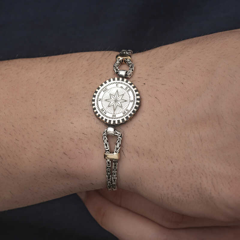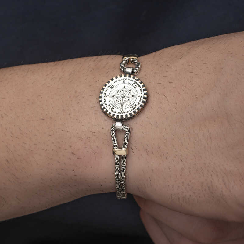 Gümüş Pusula Erkek Bileklik