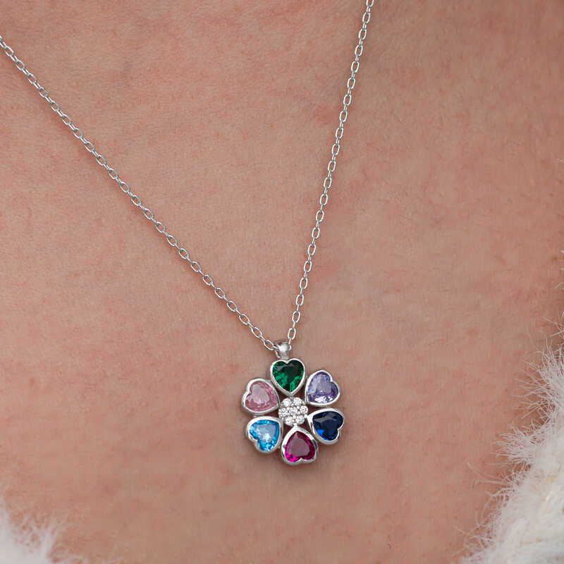 Renkli kalpli çiçek kolye genellikle sevgi, dostluk ve pozitif duyguların bir sembolü olarak kabul edilir. Renklerin çeşitliliği, hayatın farklı yönlerini ve duygusal renk paletini temsil edebilirken, kalp figürü de sevgi ve bağlılığı simgeler. Bu şık kolye; doğum günü hediyesi, sevgililer günü veya özel günlerde tercih edilebilecek mükemmel bir seçenektir.Kolye; 925 ayar gümüşten imal edilmiştir. Gümüş üzerine rodyum kaplama yapılmıştır. Gümüş ve değerli taşlar nedeniyle belirtilen ortalama ürün ağırlığında ± %10 sapma olabilmektedir.