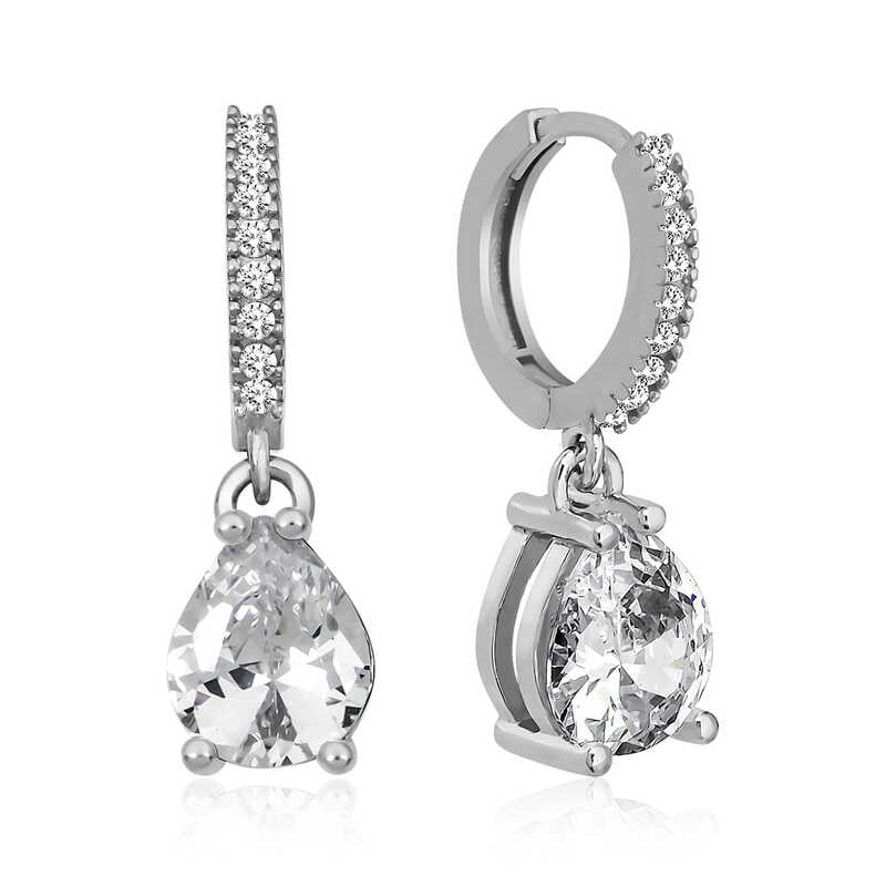 Gümüş Rodyum Halka Damla Küpe
