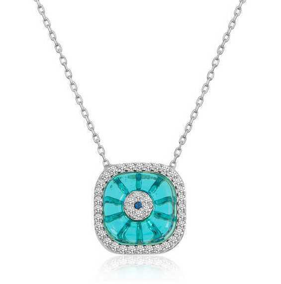 Gümüş Rodyum Kare Camgöz Nazar Bayan Kolye