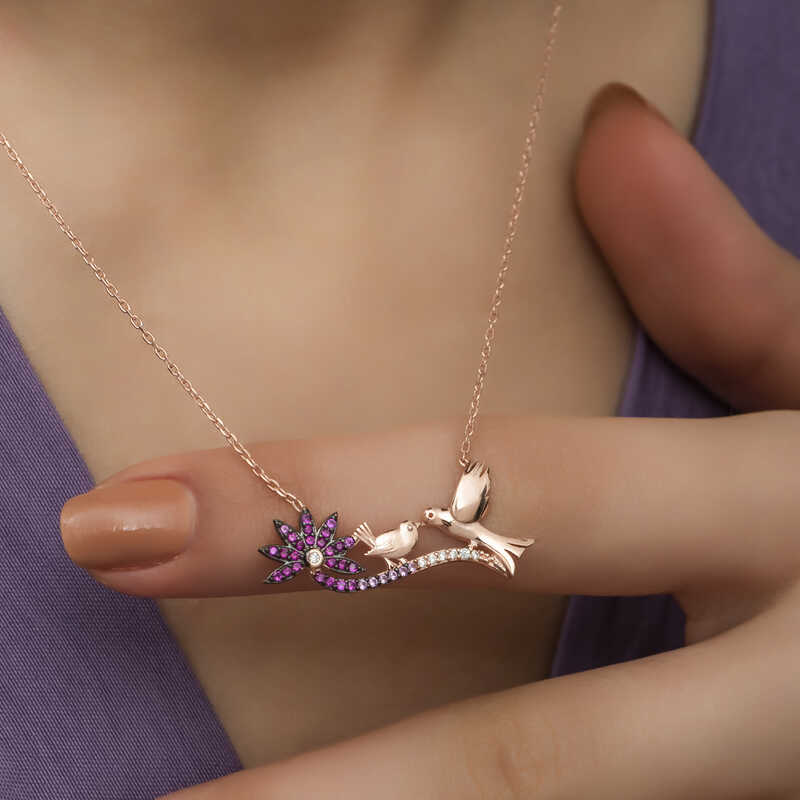​Gümüş Rose Anne Ve Yavru Kuş Bayan Kolye