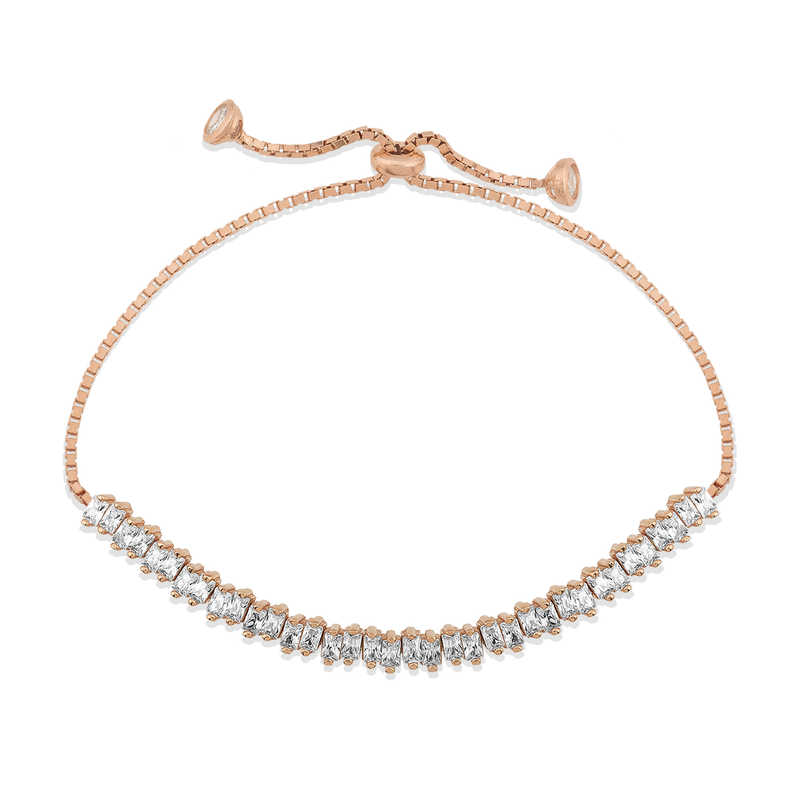 Gümüş Rose Baget Taşlı Su Yolu Asansör Bileklik