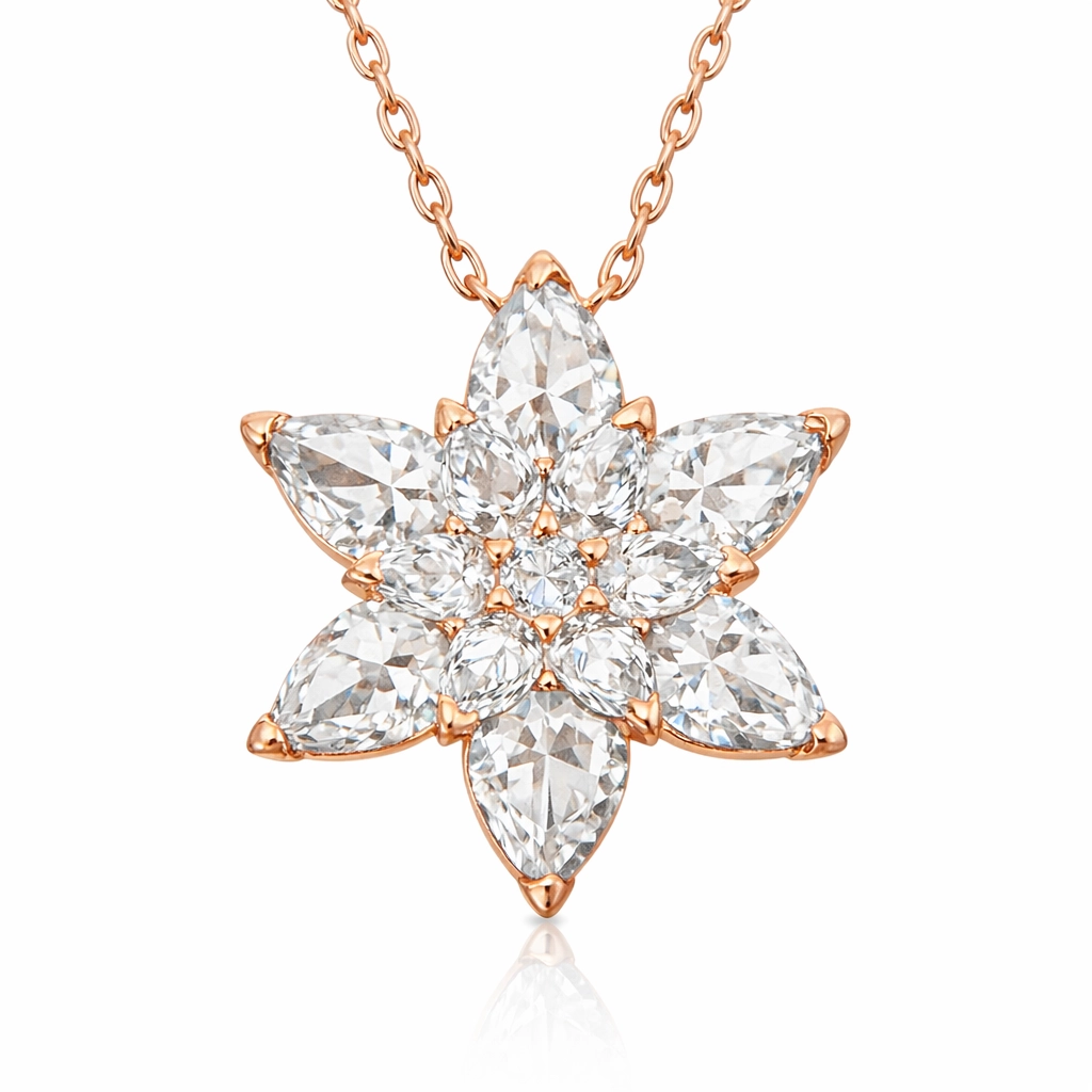 Gümüş Rose Beyaz Lotus Çiçeği Kolye
