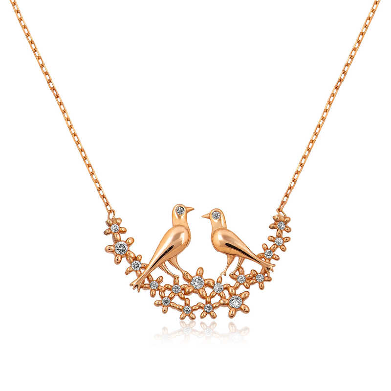 Gümüş Rose Çifte Kumrular Bayan Kolye