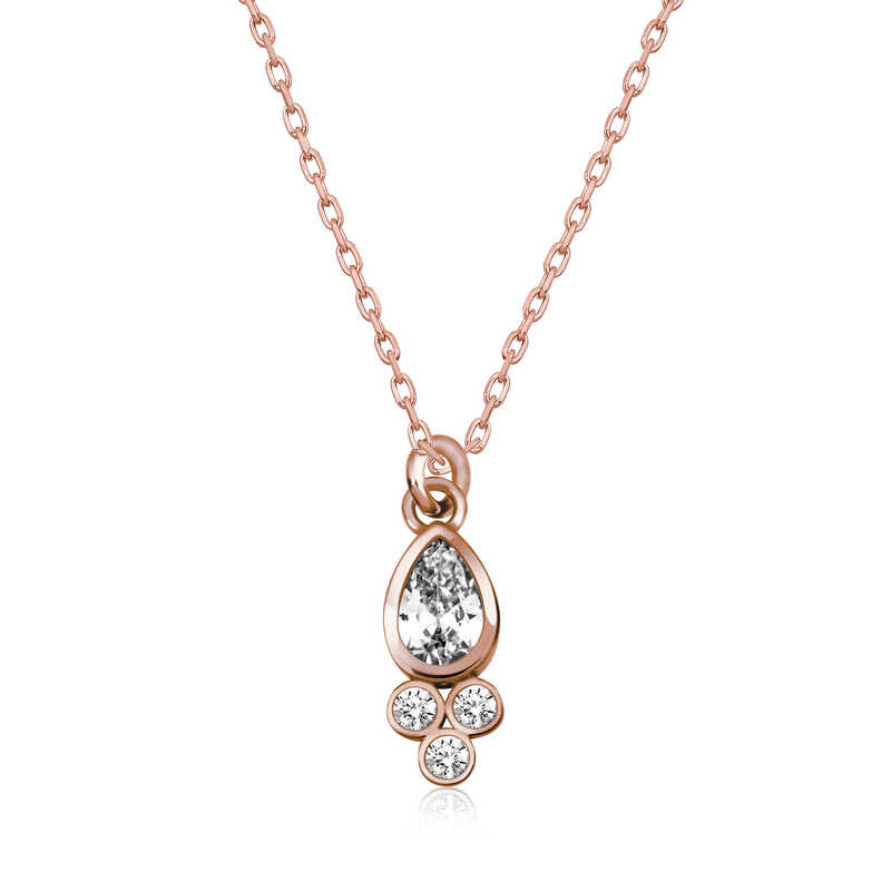 Gümüş Rose Çiğ Damlası Tek Taş Bayan Kolye