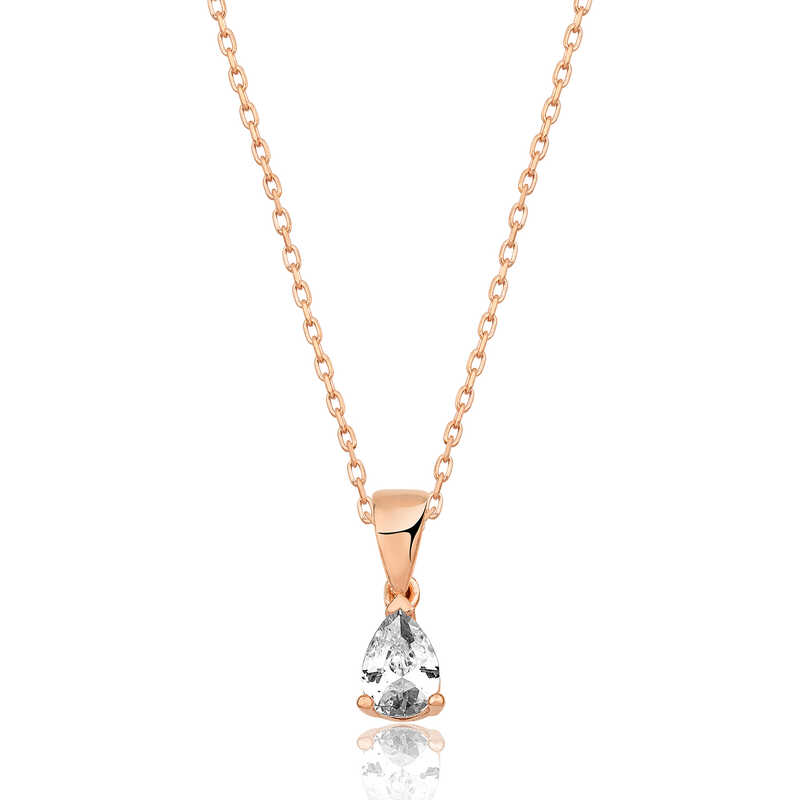 Gümüş Rose Damla Taş Kolye