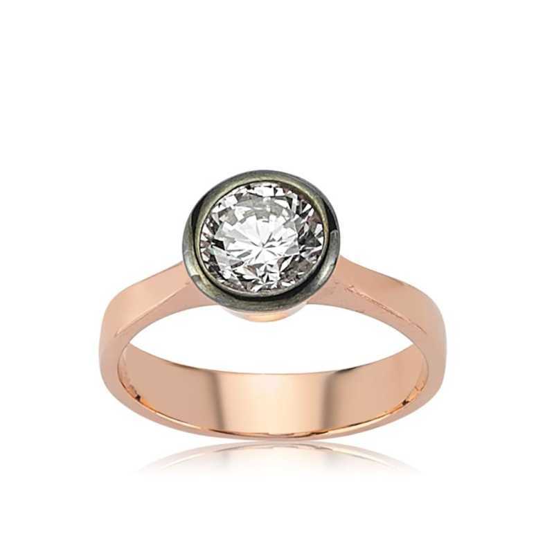Gümüş Rose Elmas Montür Tek Taş Bayan Yüzük