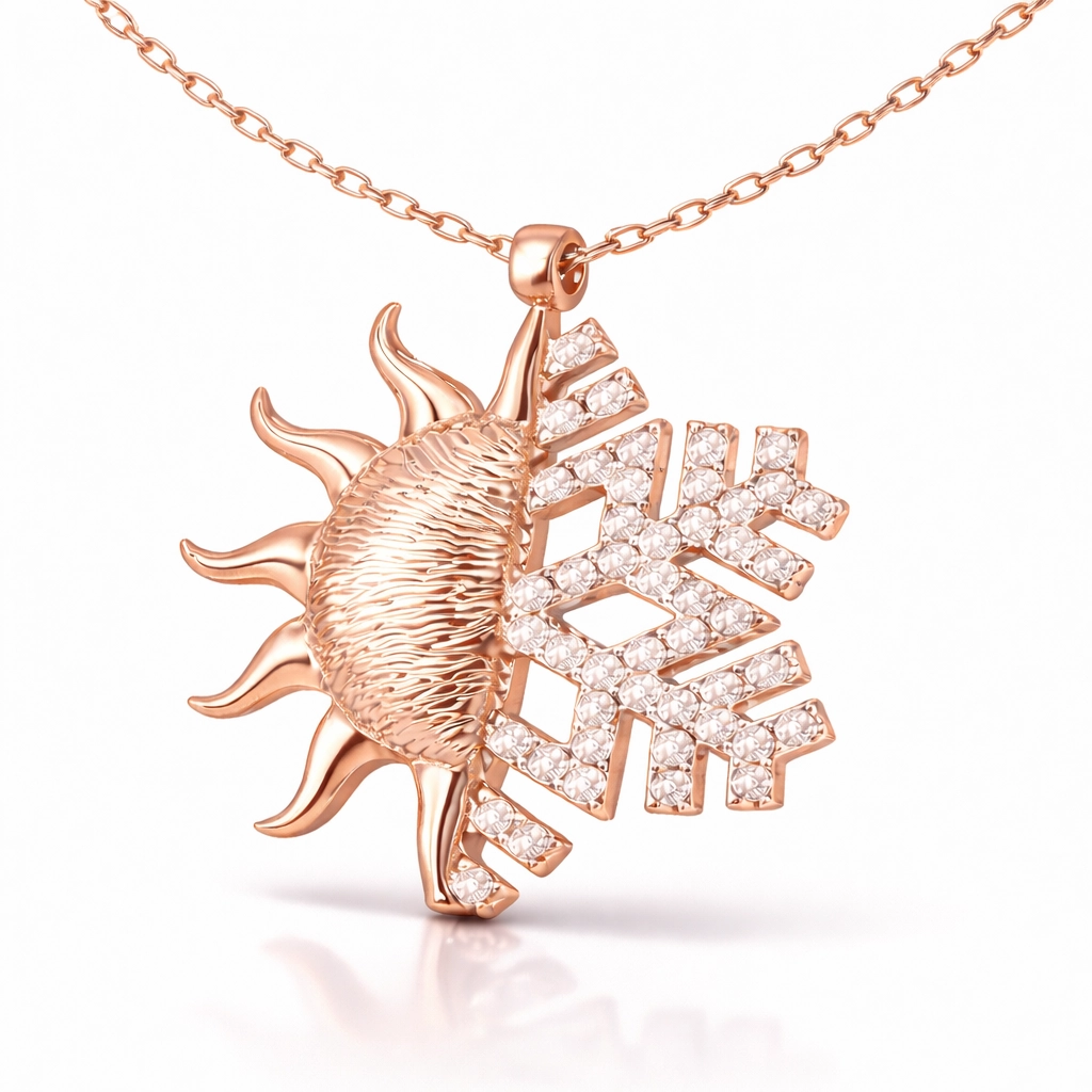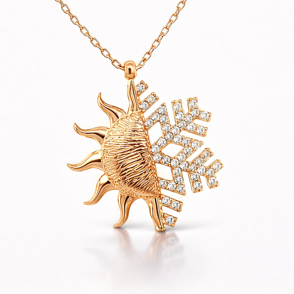 Güneş; ışığın, bilginin, iyiliğin, gücün ve yönetimin sembolüdür. Bu ışıl ışıl ve farklı tasarımıyla göz kamaştıran kolye; 925 ayar gümüşten imal edilmiştir. Gümüş üzerine rose kaplama yapılmıştır. Rose kaplama yapılan gümüş ürünler parlaklığını uzun süre muhafaza eder, oksitlenmesi gecikir. Gümüş güneş kartanesi bayan kolye üzerinde bulunan taşlar zirkon"dur. Tüm gümüş kolyelerde olduğu gibi gümüş güneş bayan kolye de tamamı el emeği ile üretilmiştir. Gümüş ve değerli taşlar nedeniyle belirtilen ortalama ürün ağırlığında ± %10 sapma olabilmektedir.