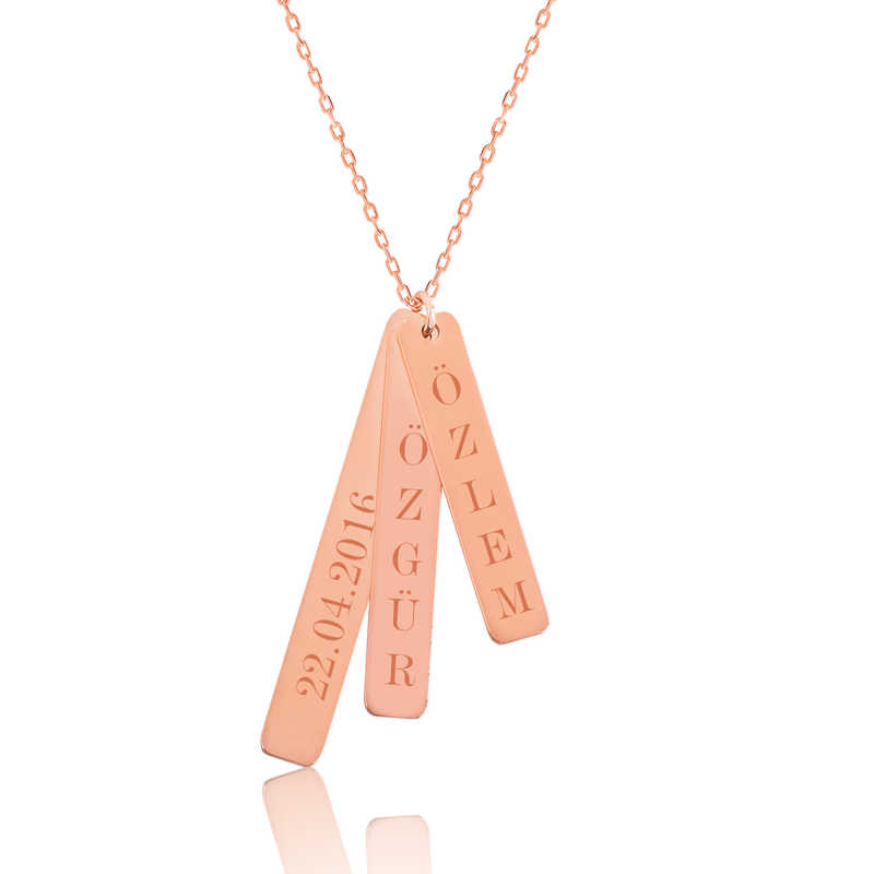 Gümüş Rose İsimlik Çubuk Plaka Kolye