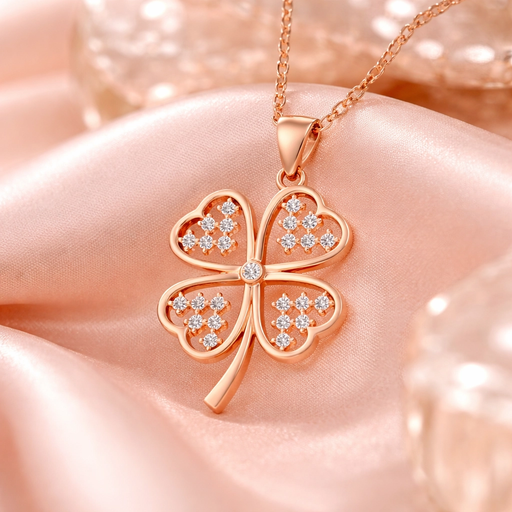 Gümüş Rose Kalpli Dört Yapraklı Yonca Kadın Kolye