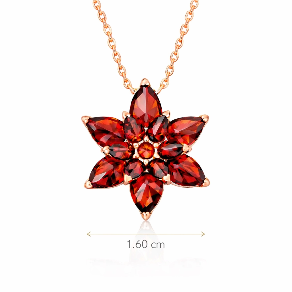 Gümüş Rose Kırmızı Lotus Çiçeği Kolye