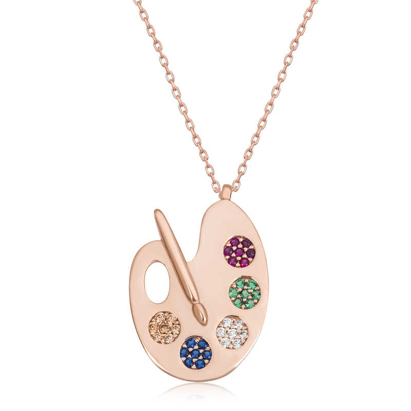 Gümüş Rose Ressam Paleti Kadın Kolye