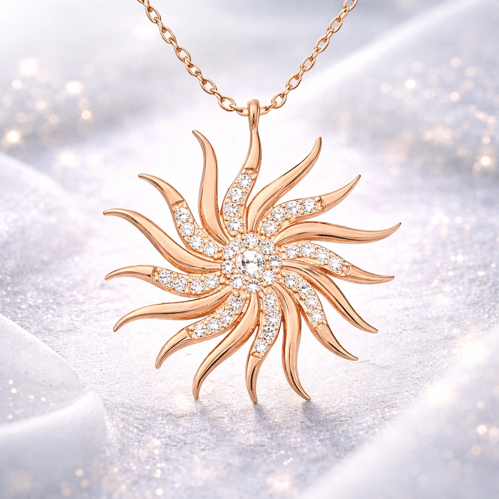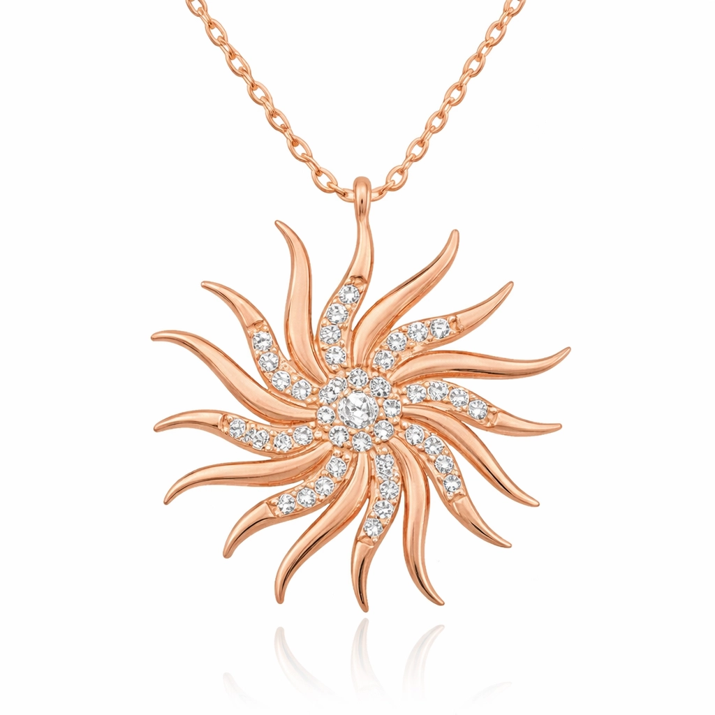 Rüzgar gülü desenli zirkon taşlar ile tasarlanmış şık ve ışıltılı modern kolye günün her anında severek kullanabileceğiniz, herkesin beğenisini toplayabilecek ve göz kamaştırabilecek bir üründür. Bu şık rüzgar gülü bayan kolye; doğum günü hediyesi, sevgililer günü hediyesi veya annelere hediye olarak özel günlerde tercih edilebilecek mükemmel bir seçenektir. Gümüş rücgar gülü bayan kolye 925 ayar gümüşten imal edilmiştir. Bu kolye üzerinde rose altın kaplama yapılmıştır. Rose altın kaplama yapılan gümüş rüzgar gülü bayan kolye modelleri parlaklığını uzun süre muhafaza eder. Ürünlerimizin tamamı el emeği ile üretilmiştir. Gümüş ve değerli taşlar nedeniyle belirtilen ortalama ürün ağırlığında ± %10 sapma olabilmektedir.