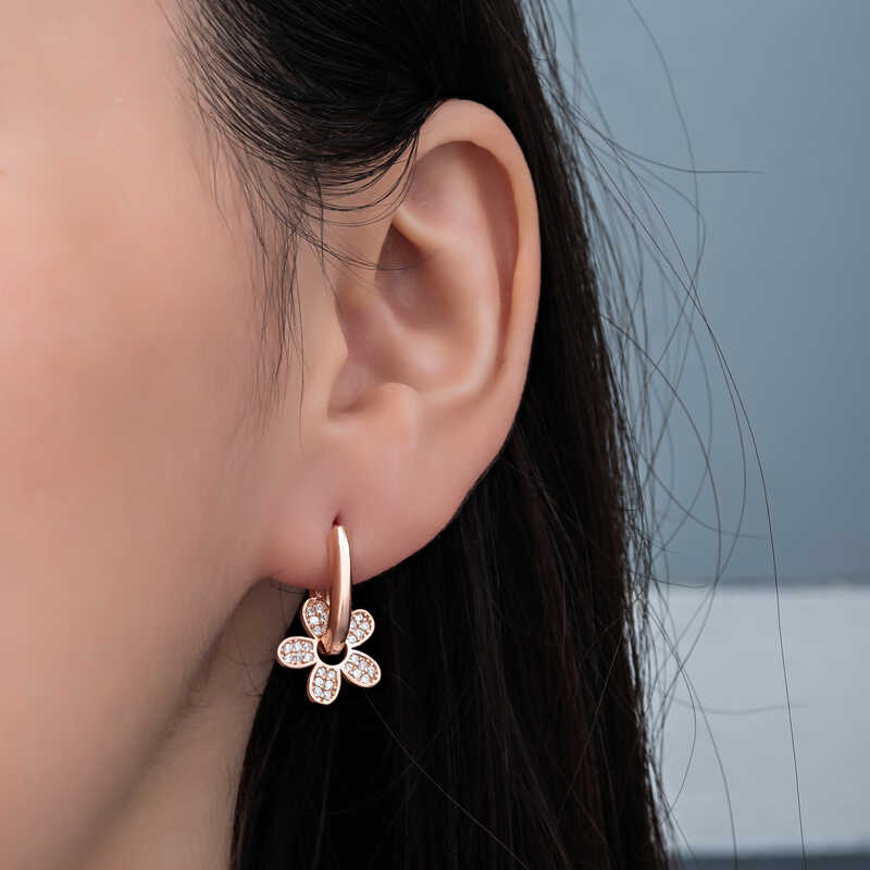 Gümüş Rose Sallantılı Çiçek Desenli Kadın Küpe